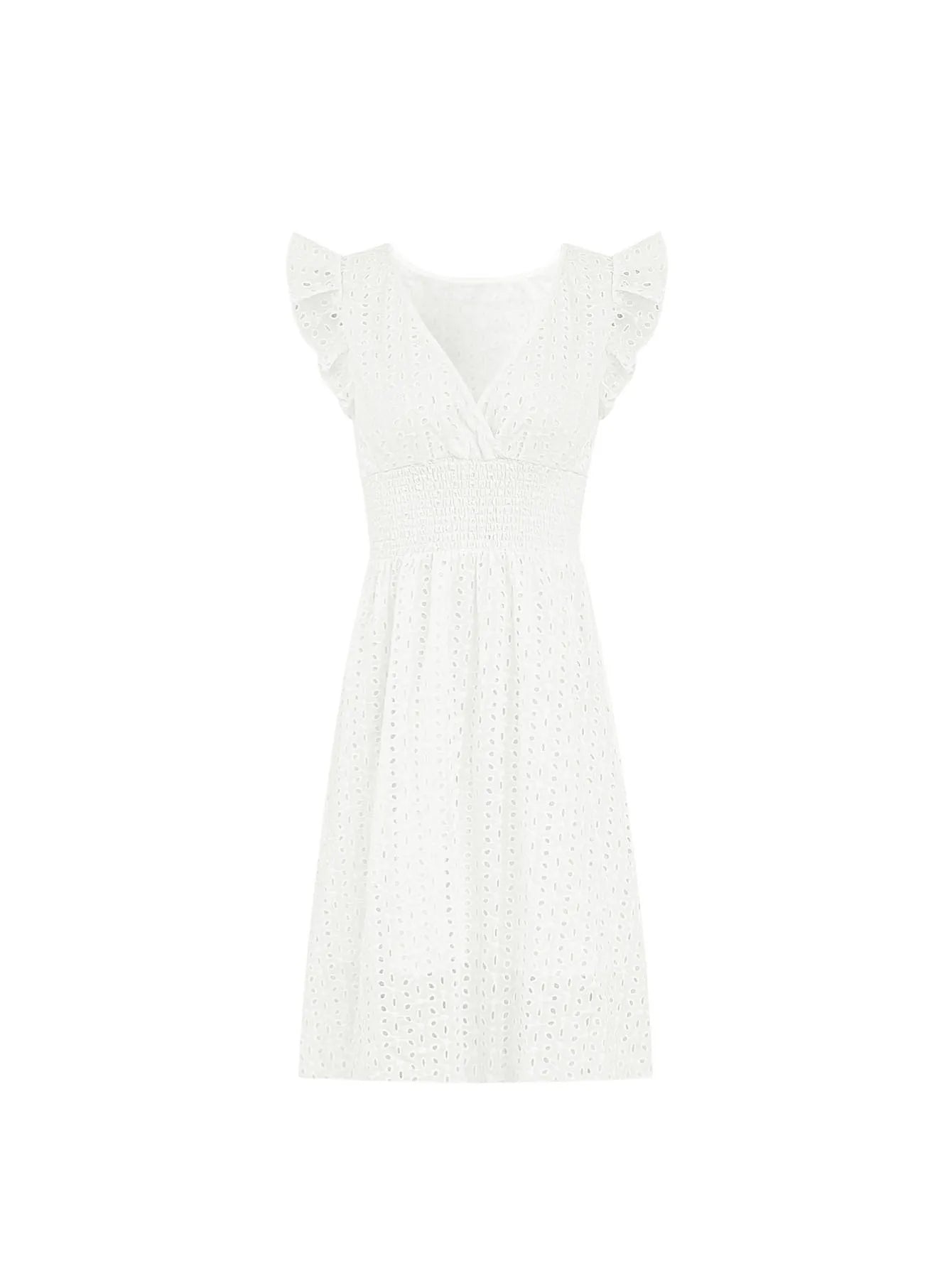 Un abito leggero e traforato, con maniche a foglia di loto e dettagli ricamati che valorizzano ogni movimento. Fresco, delicato e perfetto per le giornate estive!